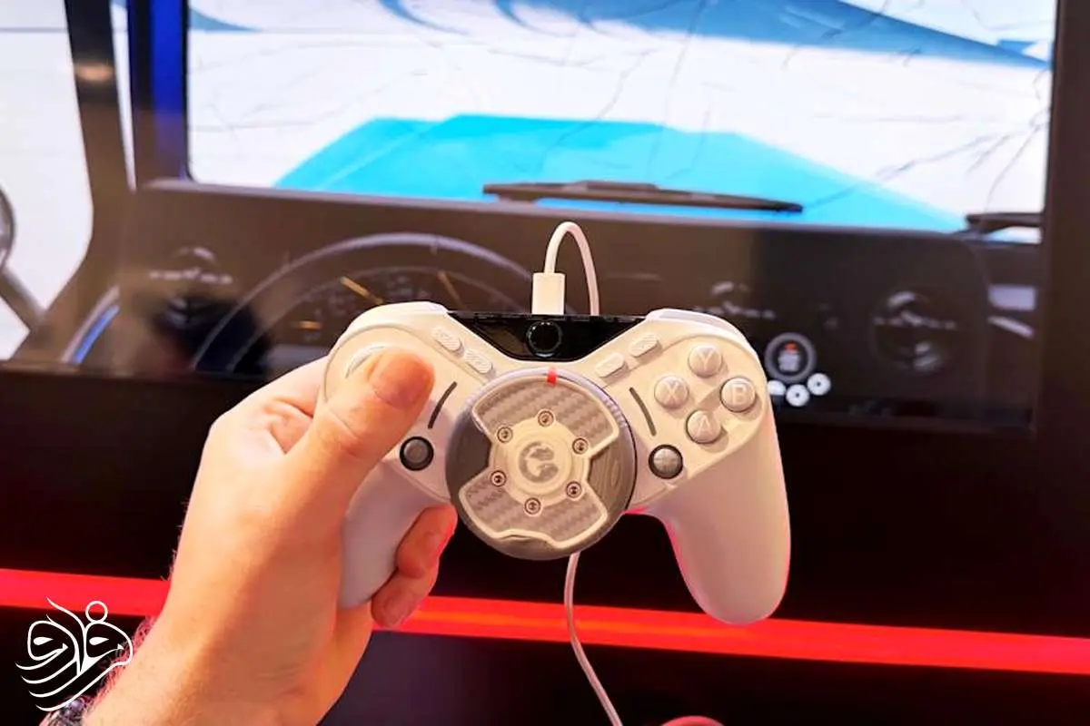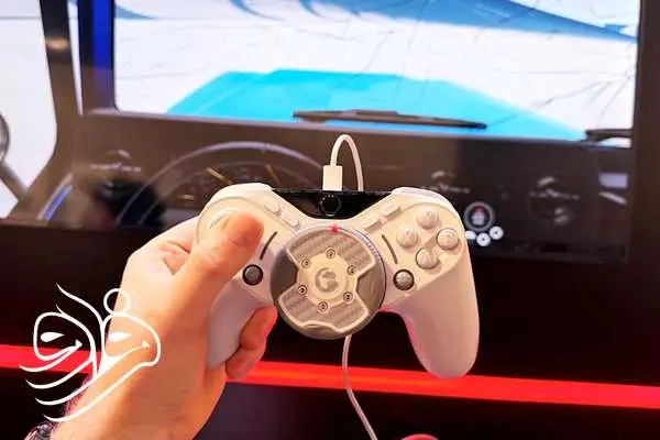 یک دسته بازی جدید در نمایشگاه CES 2026 معرفی شده که دارای یک فرمان با قابلیت بازخورد نیرو در وسط آن است.
