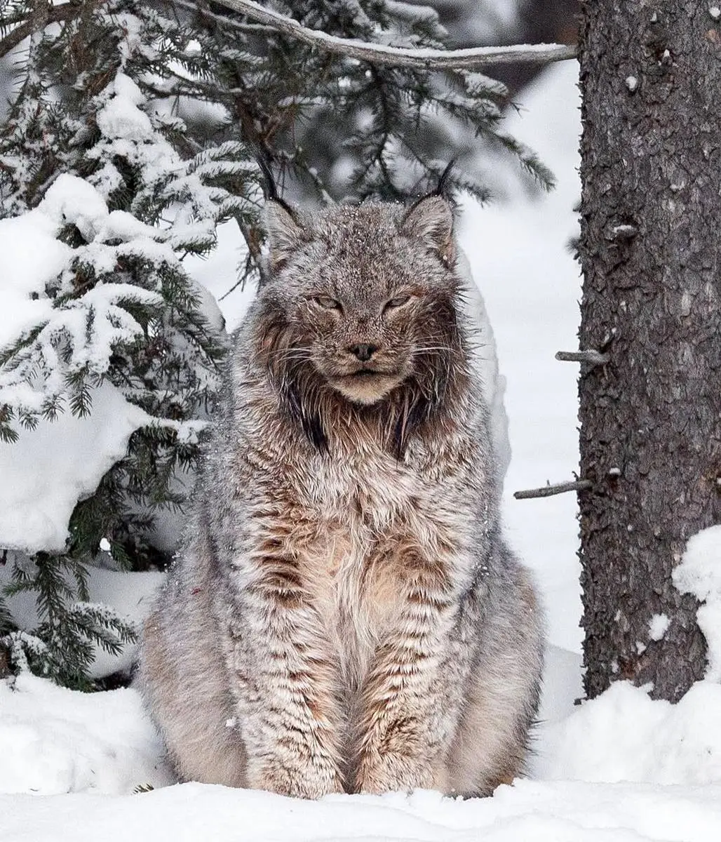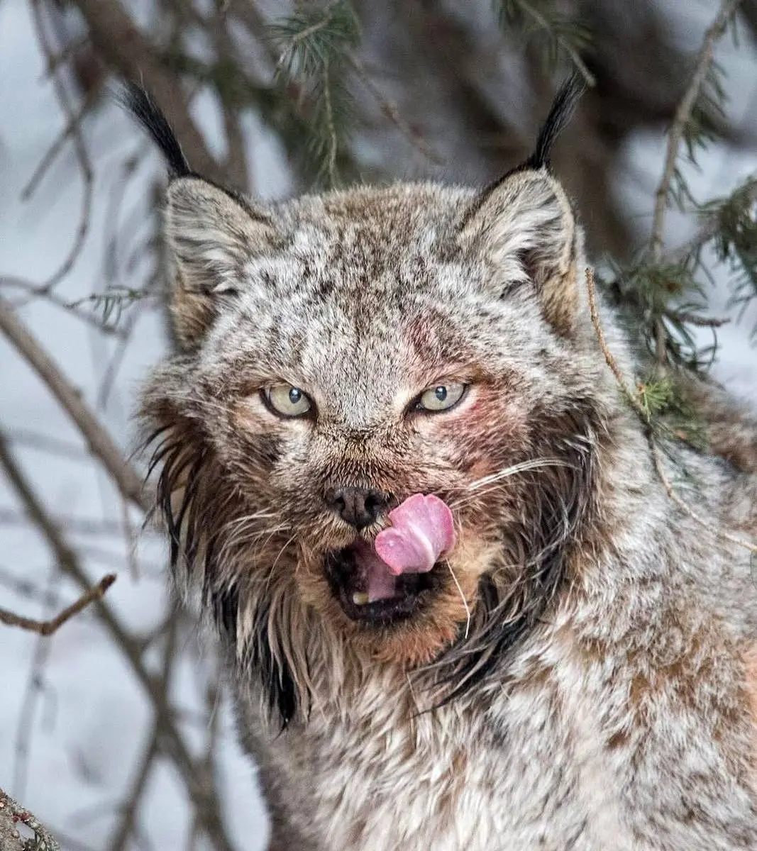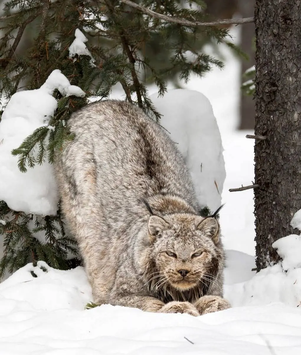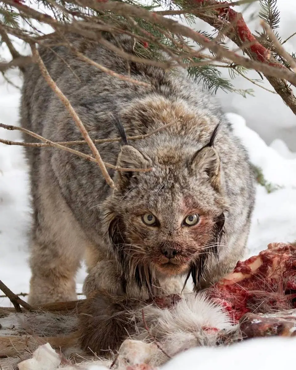 این سیاه‌گوش نر بزرگ کانادایی در کوه‌های راکی کانادا عکسبرداری شد، جایی که پس از یک چرت، دیده شد که در تنه درخت استراحت می‌کند و محیط اطرافش را بررسی می‌کند. همچنین مشاهده شد که او طی چند روز از یک گوزن تغذیه می‌کند و آن را محافظت می‌کند، با لکه‌های تیره روی پوستش که بقایای شکار را نشان می‌دهد.
